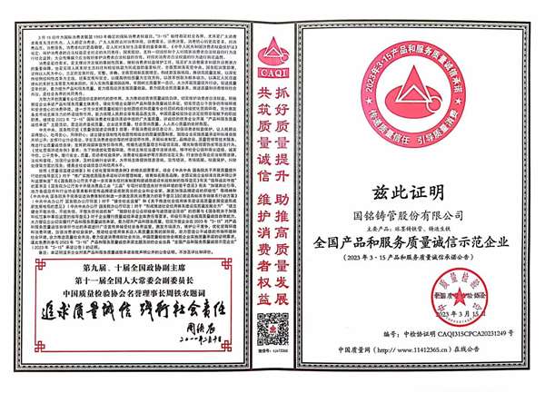 在半個(gè)多世紀(jì)的崢嶸歲月中,國銘鑄管依托雄厚實(shí)力和專業(yè)技術(shù)品質(zhì),堅(jiān)持“技術(shù)提升質(zhì)量,品質(zhì)鑄就品牌,創(chuàng)新推動(dòng)發(fā)展”的企業(yè)宗旨,為客戶提供滿意的產(chǎn)品和服務(wù)